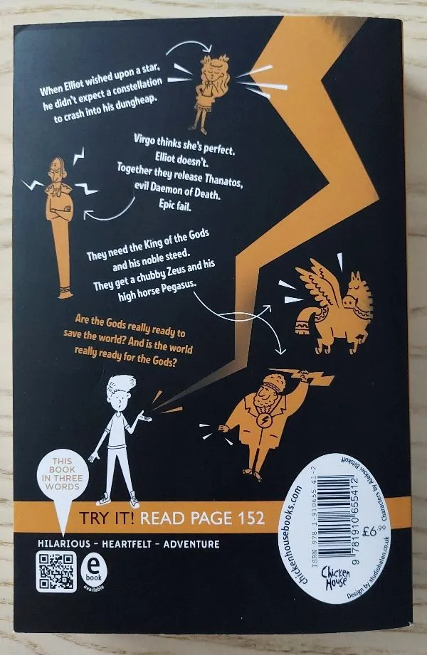 Elliot's mum is ill and his home is under threat, but a shooting star crashes to earth and changes his life forever. The star is Virgo - a young Zodiac goddess on a mission. But the pair accidentally release Thanatos, a wicked death daemon imprisoned beneath Stonehenge, and must then turn to the old Olympian gods for help.