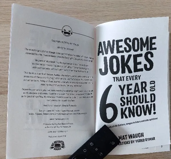 (Pasidėvėję viršelių kampeliai, kelios dėmelės paskutiniame lape ir galinio viršelio vidinėje pusėje. Turiu šias vaikiškas angliškas juokų knygeles: Ready Teddy Go Joke Book ir Awesome Jokes That Every 6 Year Old Should Know!)