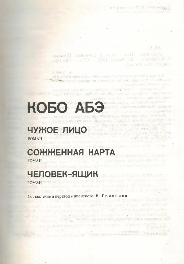 Кобо Абэ. Чужое лицо. Сожженная карта. Человек-ящик
