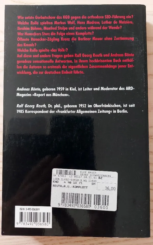 "Mein Sturz als Partei- und Staatschef war das Ergebnis eines großangelegten Manövers, dessen Drahtzieher sich noch im Hintergrund halten", diesen Satz Honneckers nahmen Andreas Bönte und Ralf Georg Reuth zum Anlaß, weitreichende Recherchen über das Ende der DDR anzustellen. Ihr Ergebnis: Gorbatschow-Anhänger in der SED wollten mit Hilfe des "Mannes auf der Straße" den Sturz Honneckers und seiner "Betonfraktion" in die Wege leiten, um so eine sozialistische Reformpolitik nach Moskauer Vorbild betreiben zu können.