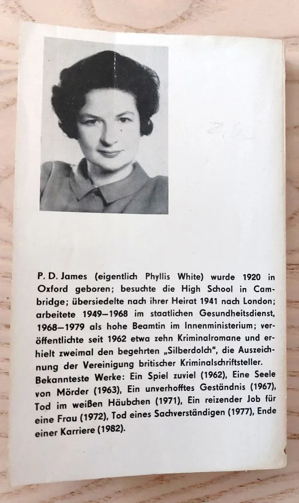 (Nuo laiko gelstelėję lapai. P. J. James (vokiečių kalba) turiu šias knygas: Ein unverhofftes Geständnis; Der schwarze Turm; Ein makelloser Tod.)