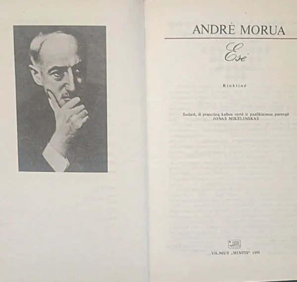 Lietuvių skaitytojui gerai žinomo prancūzų rašytojo A. Morua esė rinktinėje spausdinami geriausi jo eseistikos darbai.