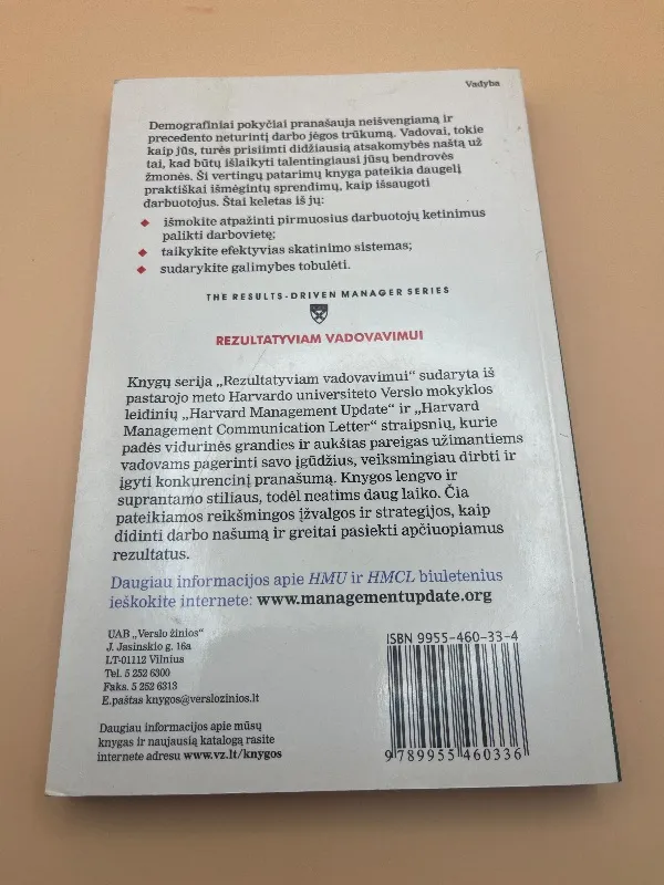 Demografiniai pokyčiai pranašauja neišvengiama ir precedento neturintį darbo jėgos trūkumą. Vadovai, tokie kaip jūs, turės prisiimti didžiausią atsakomybės naštą už tai, kad būtų išlaikyti talentingiausi jūsų bendrovės žmonės. Ši vertingų patarimų knyga pateikia daugelį praktiškai išmegintų sprendimų, kaip išsaugoti darbuotojus. Štai keletas iš jų: