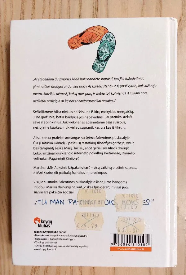 „Ar stebėdami du žmones kada nors bandėte suprasti, kas jie: sužadėtiniai, giminaičiai, draugai ar dar kas nors? Aš kartais stengiuosi, ypač rytais, kai važiuoju metro. Sutelkiu dėmesį į kokią nors porą ir stebiu tol, kol vienas iš jų kaip nors netikėtai pasielgia ar ką nors nedviprasmiškai pasako...“ Šešiolikmetė Alisa niekuo neišsiskiria iš kitų mokyklos mergaičių. Ji ne gražuolė, bet ir baidykle jos nepavadinsi. Jai patinka stebėti save ir aplinkinius. Juk kiekvienas apsimetame esąs svarbus, nešiojame kaukes, ir tik vėliau supranti, kas yra kas iš tikrųjų. Alisai tenka praleisti atostogas su šeima Salentinos pusiasalyje. Čia ji sutinka Danielį – pašėlusį rastafarių filosofijos gerbėją, visur besitampantį šešką Marlį. Tačiau, anot geriausio Alisos draugo Luko, amžinai kiurksančio interneto pokalbių svetainėse, Danielio vėlinukai „Pagaminti Kinijoje“. Martina, „Mis Auksinis Užpakaliukas“, – visų vaikinų erotinis sapnas, o Mari skaito tik paskalų žurnalus ir horoskopus. Visi jie susitinka Salentinos pusiasalyje ošiant jūros bangoms ir Bobui Marliui dainuojant, kad „viskas bus gerai“, ir visus juos šią vasarą pakeičia žodžiai: „Tu man patinki toks, koks esi.“