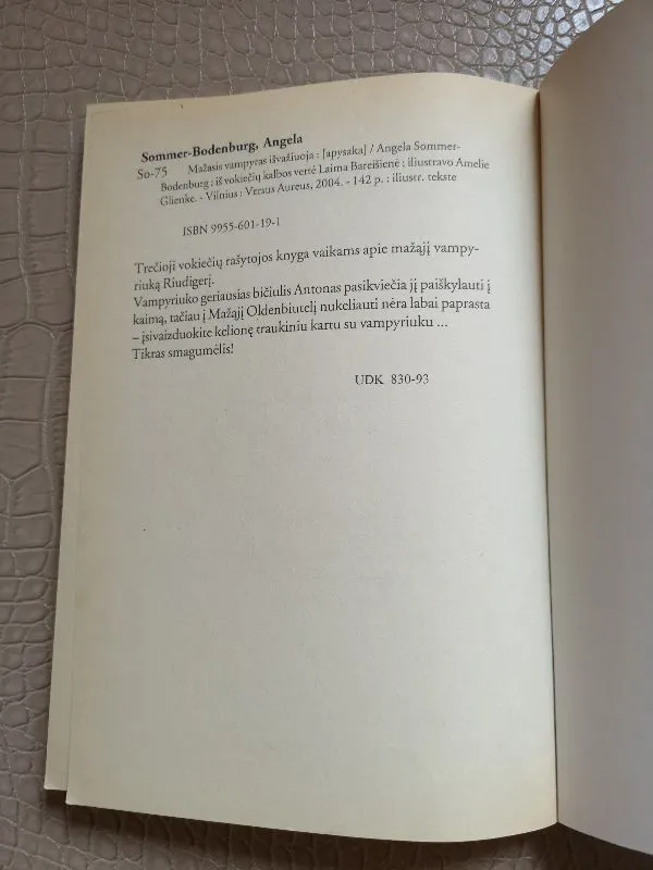 Trečioji vokiečių rašytojos knyga vaikams apie mažąjį vampyriuką Riudigerį. Vampyriuko geriausias bičiulis Antonas pasikviečia jį paiškylauti į kaimą, tačiau į Mažąjį Oldenbiutelį nukeliauti nėra labai paprasta – įsivaizduokite kelionę traukiniu kartu su vampyriuku ... Tikras smagumėlis!