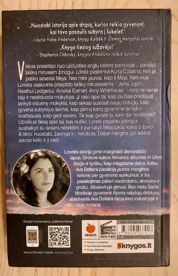 Viskas prasidėjo nuo užduoties anglų kalbos pamokoje – parašyti laišką mirusiam žmogui. Lorelė pasirenka Kurtą Cobainą, nes jis patiko seseriai Mėjai. Nes mirė jaunas, kaip ir Mėja. Netrukus Lorelės sąsiuvinis prisipildo laiškų mirusiesiems – Janis Joplin, Heathui Ledgeriui, Ameliai Earhart, Amy Winehouse, – nors nė vieno taip ir neatiduoda mokytojai. Ji rašo apie tai, kaip jaučiasi pradėjusi lankyti vidurinę mokyklą, kaip sekasi susirasti naujų draugų, kaip gyvena subyrėjus šeimai, kaip pirmą kartą gyvenime įsimyli ir, svarbiausia, kaip gedi sesers. Tik kaip gedėti to, kam dar neatleidai? Užrašiusi tiesą apie tai, kas nutiko, Lorelė pagaliau įstengia susitaikyti su sesers netektimi ir pamatyti Mėją tokią, kokia ši buvo iš tikro: nuostabi, žavinga ir... netobula. Dabar mergina gali ieškoti savojo kelio ir jį rasti.