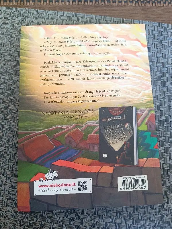 – Tai... tai... Maču Pikč?.. – žodis užstrigo gerklėje.– Taip, tai Maču Pikču, – išsklaidė dvejones Benas. – Apleistas inkų miestas, inkų kultūros šedevras, architektūros stebuklas. Taip, tai Maču Pikču.Draugai tylėjo kiekvienas paskendęs savo mintyse. Penki klasės draugai – Laura, Kristupas, Sandra, Benas ir Diana – skrisdami lėktuvu į tarptautinį konkursą net pamanyti negalėjo, kad nukeliaus šimtus metų į praeitį ir atsidurs Inkų imperijoje, kurios imperatorius paimtas į nelaisvę, o vietiniai renka auksą ispanų konkistadorams. Tačiau sunkūs laikai reikalauja drastiškų ir... gudrių sprendimų. Kaip seksis vaikams susirasti draugų ir įveikti pavojus? Kas laukia paslaptingos Saulės įkalinimo šventės metu? O svarbiausia – ar pavyks grįžti namo?..
