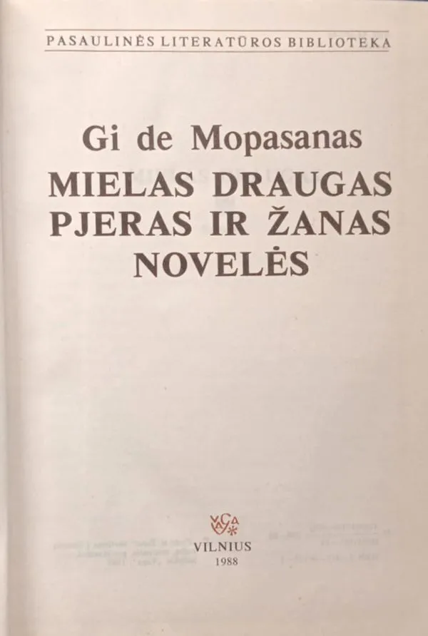 Mielas draugas. Pjeras ir Žanas. Novelės (Pasaulinės literatūros biblioteka 67)