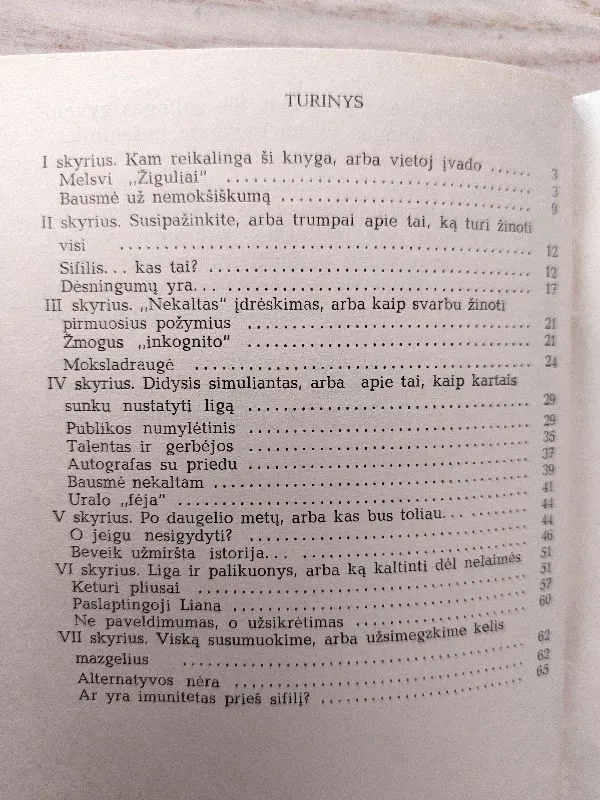Knygelės autorius pasakoja apie venerines ligas, jų priežastis, nurodo, kaip su jomis kovoti. Šia tema autorius pateikia įvairių istorijų, kur parodo gydytojų pastangas padėti į bėdą pakliuvusiems žmonėms, užkirsti kelią ligoms.