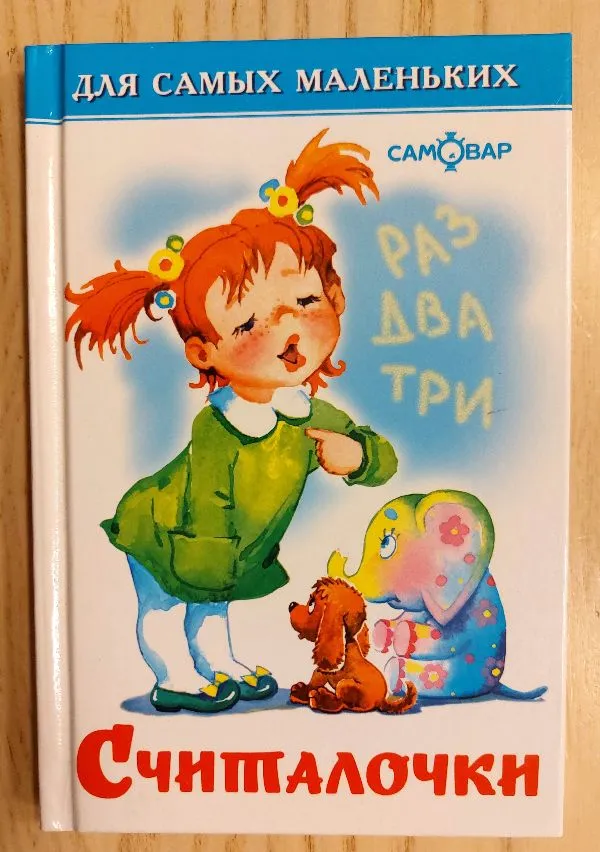 (Leidykla Samovar. Serijos "Patiems mažiausiems" turi šias knygeles: Zdravstvuj, dedushka Moroz - Sveikas, seneli Šalti ir Scitalocki - skaičiuoklės)