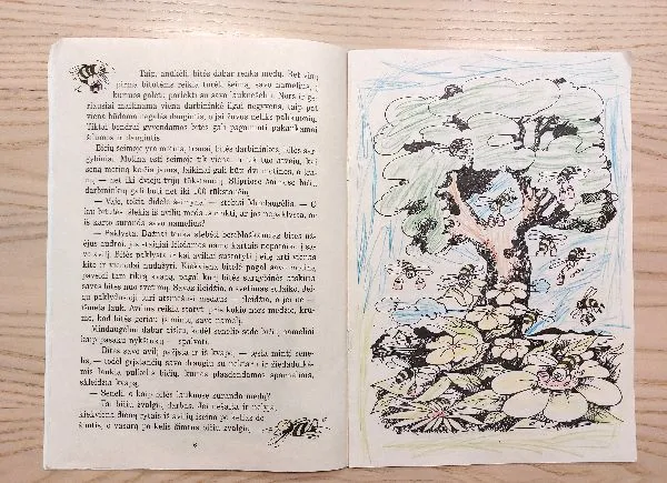 (Knygos būklė (lapų, viršelio) gera. Tekstas iliustruotas paveikslėliais, kurie vaikų buvo nuspalvinti spalvotais pieštukais.)