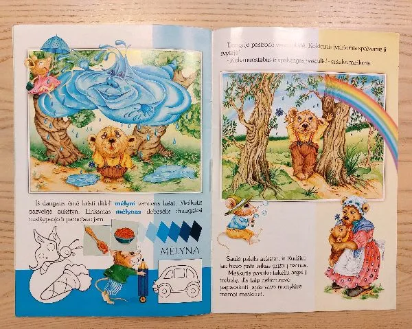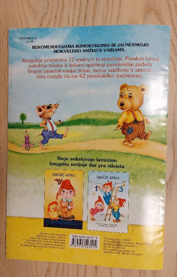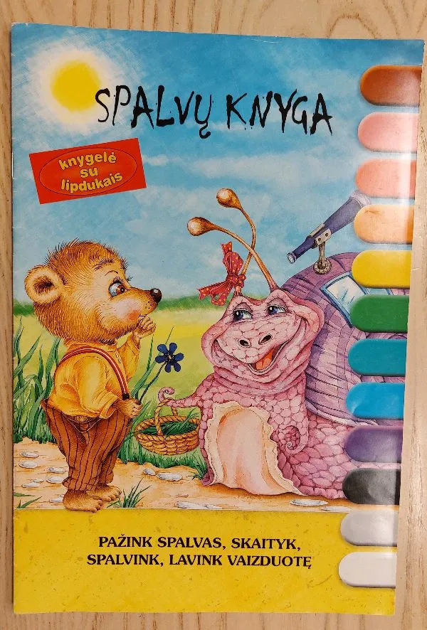 Knygelėje pristatoma 12 spalvų ir jų atspalvių. Pasakos forma pateiktas tekstas ir linksmi spalvingi paveikslėliai padeda lengvai įsisavinti naujas žinias, lavina vaizduotę ir atmintį. Jūsų mažylis čia ras 42 paveikslėlius spalvinimui.