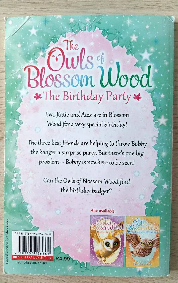 The Birthday Party (2016): Katie, Eva and Alex know a secret - when they hide inside a hollow tree trunk at the bottom of Katie's garden, they find themselves whisked away to a magical woods alive with animals, where they're no longer girls but owls! Blossom Wood needs the owls' help. It's Bobby the badger's birthday, and they want to throw him an extra-special surprise party. But when Bobby disappears from the wood, just as the party is about to begin, disaster looms. Will they find Bobby in time?