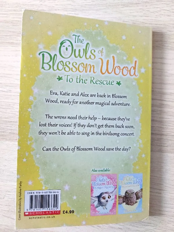 To the Rescue (2015): Katie, Eva and Alex know a secret - when they hide inside a hollow tree trunk at the bottom of Katie's garden, they find themselves whisked away to a magical woods alive with animals, where they're no longer girls but owls! Eva, Katie and Alex are back in Blossom Wood, ready for another magical adventure. The wrens need their help - because they've lost their voices! If they don't get them back soon, they won't be able to sing in the birdsong concert. Can the Owls of Blossom Wood save the day?