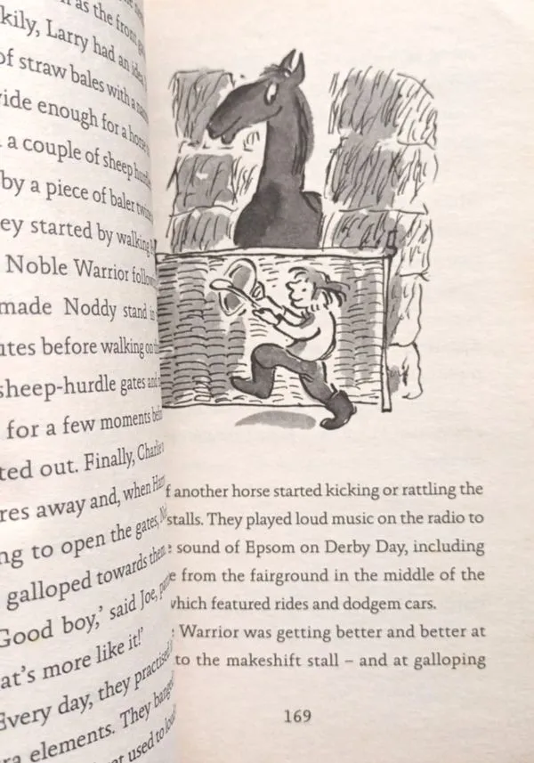 Charlie Bass yra dešimtmetė, pamišusi dėl arklių ir svajojanti turėti savo poni. Tad kai jai netyčia pavyksta nusipirkti lenktyninį žirgą, Charlie apsidžiaugia. Žirgas, kurį ji nusipirko, Noble Warrior, atrodo kaip dera: stiprus, sportiškas ir sveikas. Yra tik viena problema – jis nešuoliuoja. Tiesą sakant, jis net neišeis iš arklidės be savo geriausio draugo, išdykusio ponio, vardu Percy. Charlie įsitikinusi, kad Noble Warrior turi viską, ko reikia, kad taptų čempionu. Bet ar ji gali tai įrodyti? Artėja Derbio diena ir tik pergalė gali išgelbėti šeimos ūkį nuo atėmimo. Statymai negalėtų būti didesni. Ar Charlie pavyks paversti jos chaotišką šeimą geriausia treniruočių komanda? Ar Kilnusis Warrior nugalės savo nervus? Ar ponis Percy kada nors nustos bezdėti? Sužinokite tai šioje klasikinėje, juokingoje istorijoje apie gyvūnus, kuri puikiai tinka Dicko King-Smitho ir Geraldo Durrello gerbėjams.