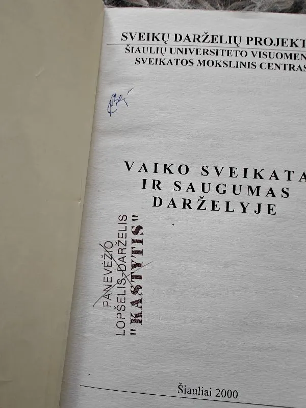 (Palankstytas ir pasitrynęs viršelis, pirmame lape yra parašas ir darželio antspaudas)
